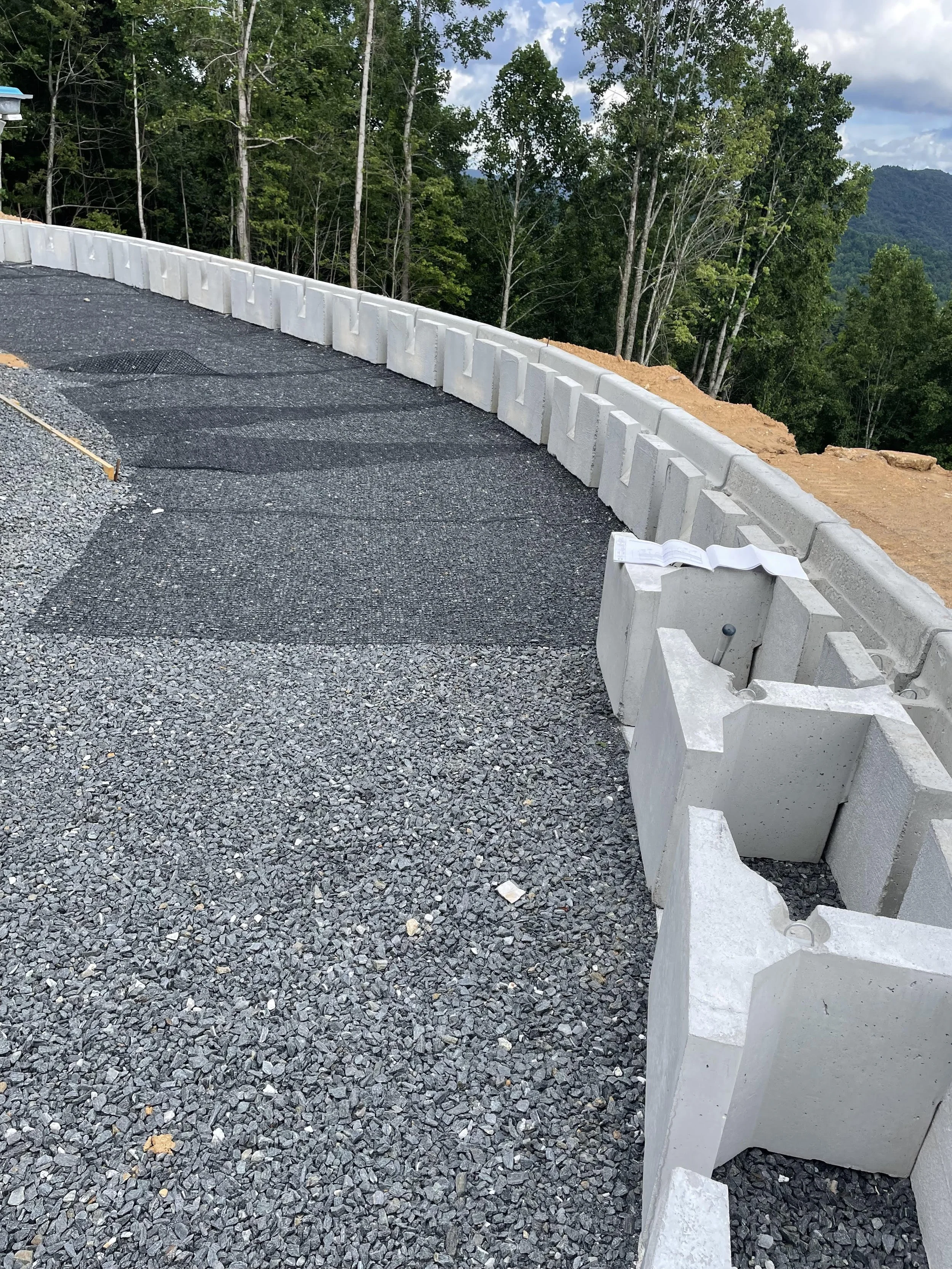 The home-owner wished to use a large pre-cast block which is most often used in a gravity system. Because the wall would need to be constructed simultaneous with the pool installation, the section of the wall closest to the pool needed to be constructed as a MSE wall, while the rest of the wall could be designed as a typical gravity wall. By reducing the area of the wall which needed to be reinforced with geogrid, rock material costs can be reduced.